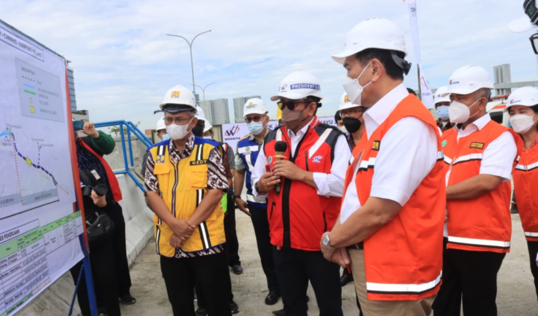 JAKARTA (Bekasi) – Wali Kota Bekasi Rahmat Effendi bersama Plt Bupati Bekasi, Akhmad Marjuki mendampingi Menteri Koordinator Bidang Kemaritiman dan Investasi Republik Indonesia Luhut Binsar Panjaitan saat menijau proyek lanjutan Jalan Tol Bekasi–Cawang–Kampung Melayu (Becakayu) Ruas Tol 2B, Jumat ( 24/12). Seperti dilaporkan mimbar-rakyat.com grup siberindo.co.
