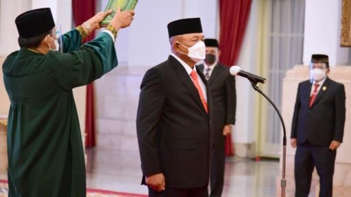 Ganip Warsito saat diambil sumpahnya sebagai Kepala Badan Nasional Penanggulangan Bencana oleh Presiden Joko Widodo di Istana Negara, Jakarta, Selasa, 25 Mei 2021. (Foto: BPMI Setpres)