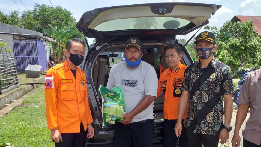 BPBD Kabupaten Mamuju memberikan bantuan kepada warga yang terdampak angin puting beliung di Desa Papalang, Mamuju, Sulawesi Barat, Rabu (15/9). (Foto: BPBD Kabupaten Mamuju)