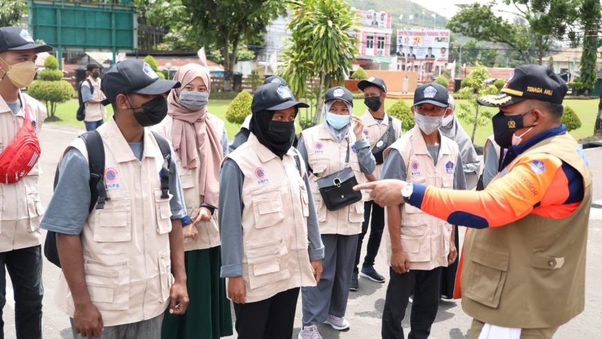 Pembekalan kepada para relawan protokol kesehatan sebelum melakukan pembagian masker di lokasi gerai masker yang berada di Kota Jayapura, Minggu (26/9). (Foto: Komunikasi Kebencanaan BNPB/Apri Setiawan)