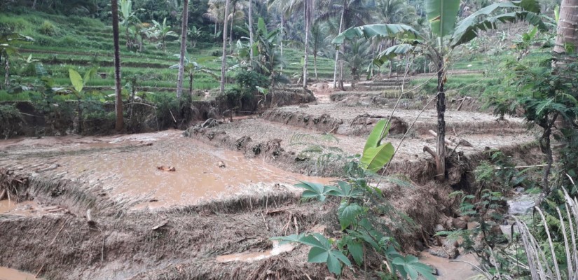 Persawahan warga yang terdampak Banjir dan longsor di Desa Karangsambung, Wonosobo, pada Sabtu (26/3). (Foto: BPBD Kabupaten Wonosobo)