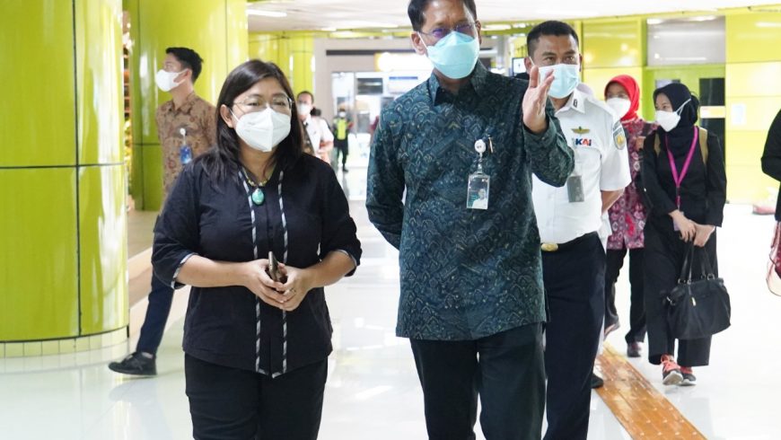 Direktur Utama KAI Didiek Hartantyo saat mendampingi Ketua Komnas Perempuan Andy Yentriyani melakukan peninjauan layanan di Stasiun Gambir. (Foto: kai.id)