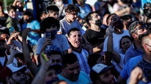 Orang-orang berkumpul di jalan dekat pemakaman Bella Vista, tempat legenda sepak bola Diego Armando Maradona akan dimakamkan, di pinggiran Buenos Aires, Argentina, 26 November 2020.(Foto Reuters/France 24)