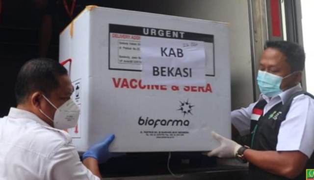 Vaksin Covid 19 tiba di Bekasi. (foto: news room Diskominfo)