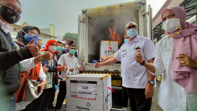 Kedatangan vaksin Sinovac disambut oleh Bupati Kuningan, H Acep Purnama, yang rencananya akan didistribusikan ke 15 Puskemas yang telah ditunjuk sebagai lokasi vaksinasi.
