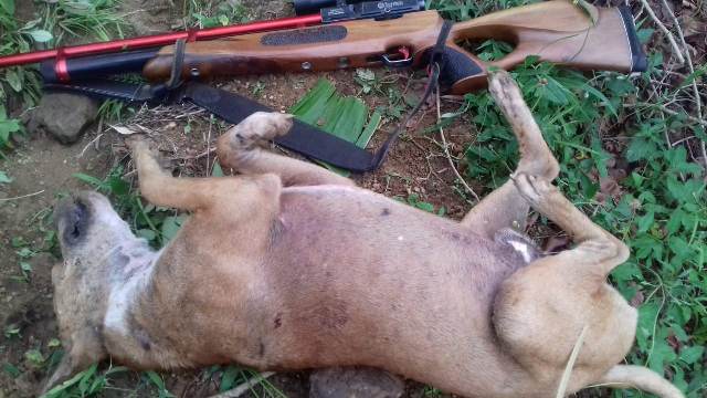 Salah satu dari enam anjing liar penghisap darah belasan kambing ditembak pemburu, Sabtu. (ist)