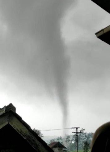 Sementara, Kepala Desa Ciherang, Masjda, menambahkan keterangan melalui sambungan seluler, bahwa pusaran angin tersebut bergerak dari batas tanah bengkok Kades, dan terjadi selama tiga menitan.