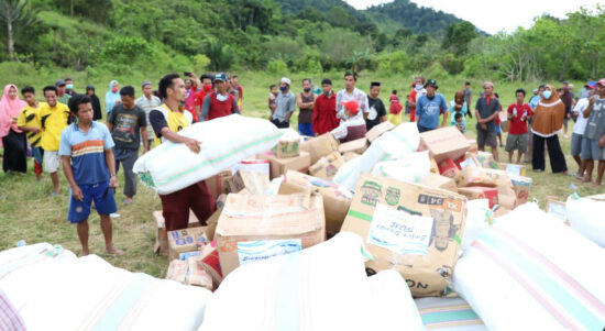 MAMUJU –Helikopter milik BNPB berjenis Chinook berhasil mendaratkan bantuan dengan berat total 8 ton menggunakan teknik sling load atau menggantungkan bantuan dengan