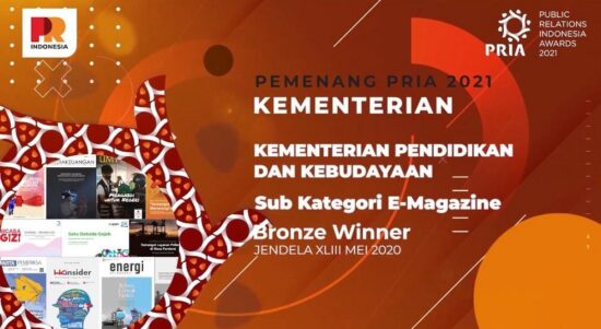 Jakarta – Majalah Jendela Kementerian Pendidikan dan Kebudayaan (Kemendikbud) berhasil meraih Bronze Winner pada Subkategori e-Magazine Kementerian dalam ajang PR Indonesia Award
