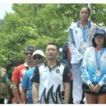 Ketum KONI Kabupaten Bekasi saksikan pengalungan medali emas nomor perairan terbuka. Siberindo.co (Bekasi)- Kakak beradik atlet renang Kabupaten Bekasi, Alfah Fadlan