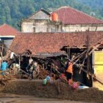Beberapa potongan batang pohon beserta material lumpur yang terbawa arus mengenai beberapa rumah warga sehingga mengakibatkan kerusakan di Desa Purasari di Kecamatan