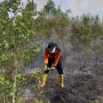 BPBD Kabupaten Sukamara melakukan pemadaman dengan alat pemukul api tradisional atau kepyok pada lahan yang terbakar di Desa Pusu, Kecamatan Sukamara, Provinsi