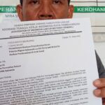 Minta Ikut Penyelesaian : Divisi Hukum DPC Astakira Cianjur, Samsa memperlihatkan surat permohonan penyelesaian Buruh Migran Indonesia (PMI), Cianjur ke Komisi IX