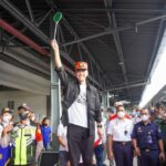 Gubernur Jawa Tengah Ganjar Pranowo melepas peserta Mudik Gratis Pemprov Jateng menggunakan KA Tawang Jaya Premium (Pasar Senen – Semarang Tawang), pada
