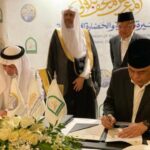 Ketua Dewan Pembina Yayasan Sejaran Nabi Muhammad SAW dan Peradaban Islam, Jusuf Kalla didampingi Sekjen Rabithah Alam Islamiyah (Liga Dunia Islam) Mohammad