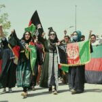 Sejumlah pendemo, wanita dan pria, menentang Taliban dengan mengibarkan bendera nasional Afghanistan saat merayakan Hari Kemerdekaan ke-102 negara itu, di Kabul, Kamis