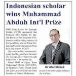 Alwi Shihab dianugerahi “Muhammad Abdo International Prize” di Mesir. (kemlu) JAKARTA – (Mesir) Pusat Kajian Cairo Center for Strategic Studies (CCSS) menyampaikan