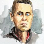 Sketsa ini dibuat pada 21 November 2020, menunjukkan Jonathann Daval yang membunuh istrinya Alexia dan kemudian membakar tubuhnya pada 2017. Dia di