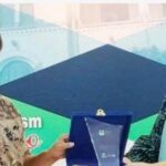 Kabid Pemasaran Wisata Dispar Kabupaten Bekasi, Tri Cahyani ( kanan) saat menerima plakat penghargaan. (agus) JAKARTA – (Cikarang) Dinas Pariwisata Kabupaten Bekasi