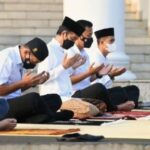 Presiden Joko Widodo melaksanakan salat Idulfitri 1442 H di halaman Gedung Induk Istana Kepresidenan Bogor, Jawa Barat, pada Kamis pagi, 13 Mei