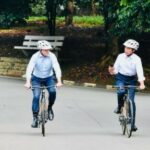 Presiden Joko Widodo mengajak PM Albanese untuk bersepeda pagi di Istana Kepresidenan Bogor, Jawa Barat, menggunakan sepeda bambu, Senin, 6 Juni 2022.