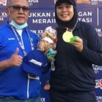 Amanda bersama pelatihnya, Muhamad Ujang Jakarta (Bekasi) – Atlet Persatuan Olahraga Biliar Seluruh Indonesia (POBSI) Kabupaten Bekasi, Amanda Rahayu kembali menyumbang medali