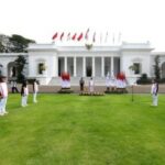 Bertempat di halaman Istana Merdeka, Jakarta, Presiden Joko Widodo, Kamis, 8 Juli 2021, melepas kontingen Indonesia yang akan berlaga di Olimpiade Tokyo.