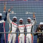 Sean Gelael ketika juara di Asian Le Mans Dubai. (tim jagonya ayam). JAKARTA – Hanya terpaut lima poin dengan tim juara