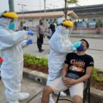 JAKARTA (Bekasi) –Tes swab terhadap masyarakat untuk mendeteksi dan mencegah penularan virus covid 19 gencar dilakukan polisi di berbagai lokasi, termasuk pada