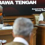Gubernur Jawa Tengah, Ganjar Pranowo saat memberikan sambutan dalam Rapat Koordinasi Penanganan Covid-19 bersama Pemerintah Provinsi Jawa Tengah di Semarang, Jawa Tengah,