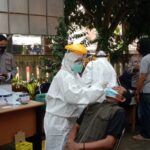 JALARTA (Bekasi)- Polsek Cikarang Utara dibantu oleh Muspika Kecamatan Cikarang Utara dan Puskesmas Cikarang yang tergabung dalam tiga Pilar melakukan Swab Test